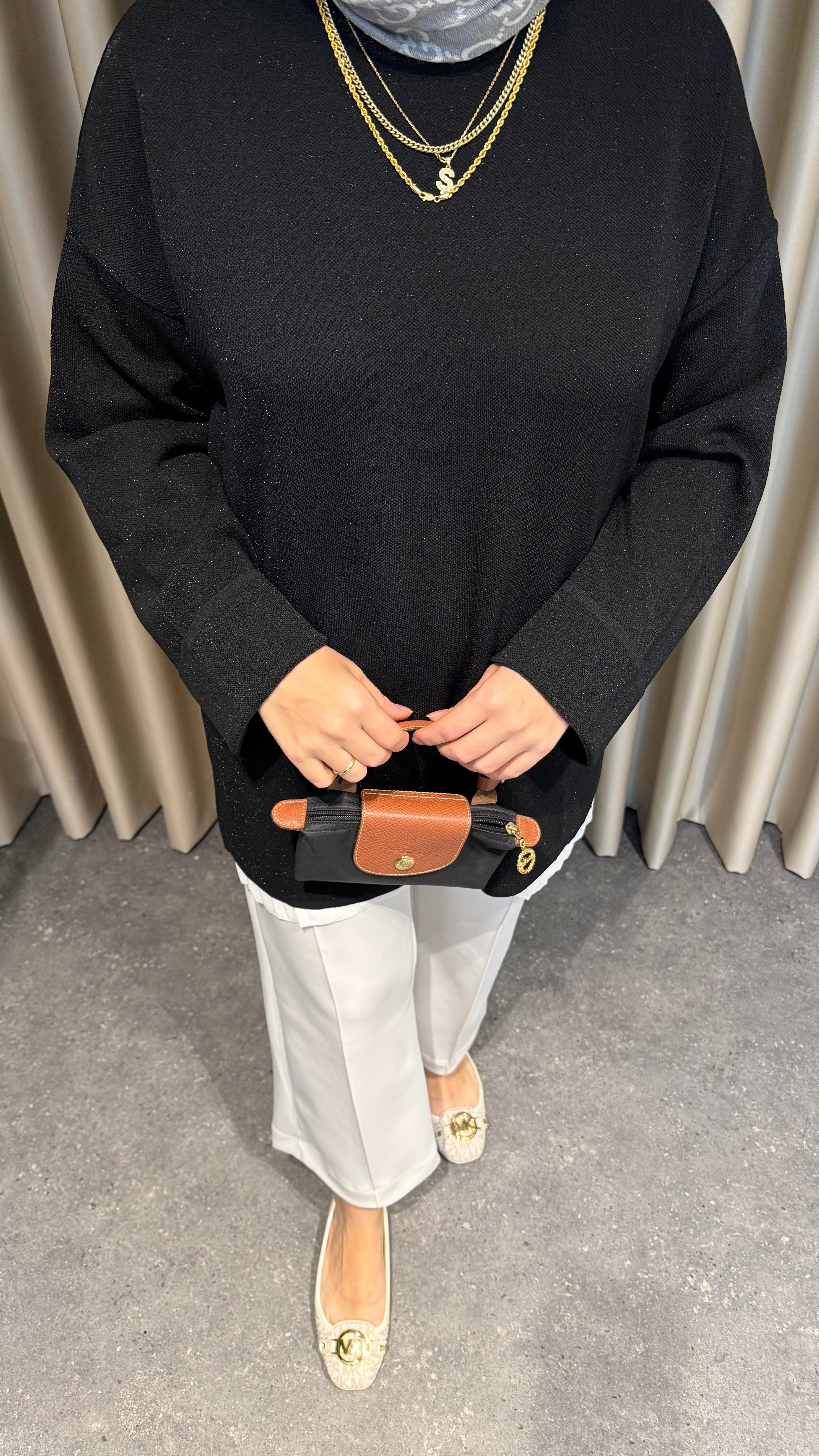 Simli triko kazak siyah